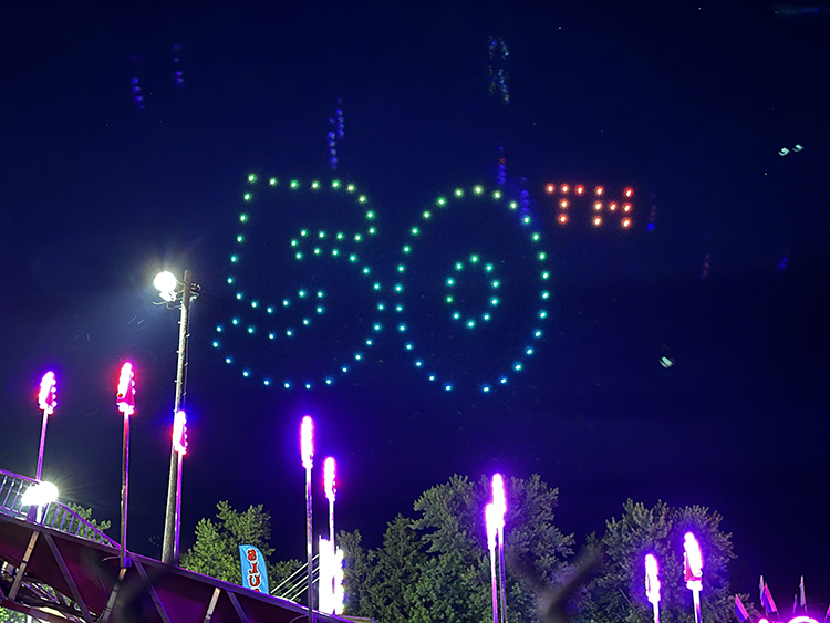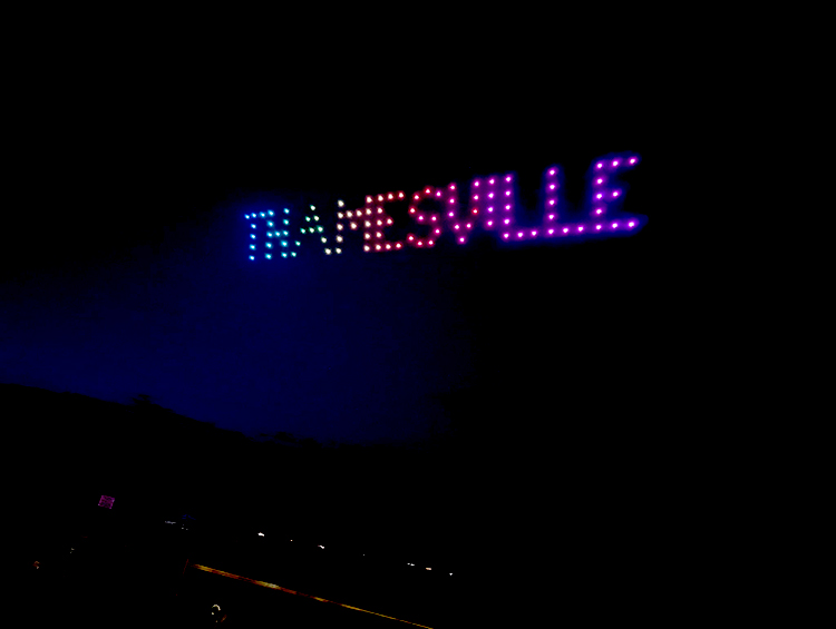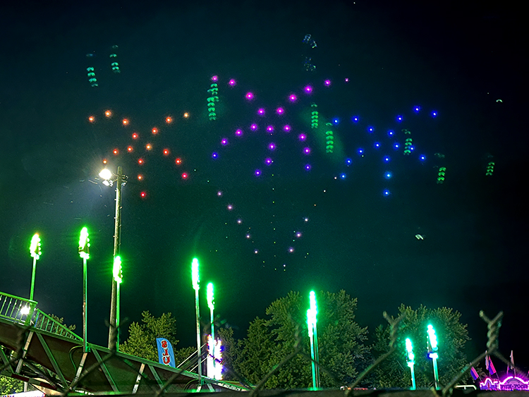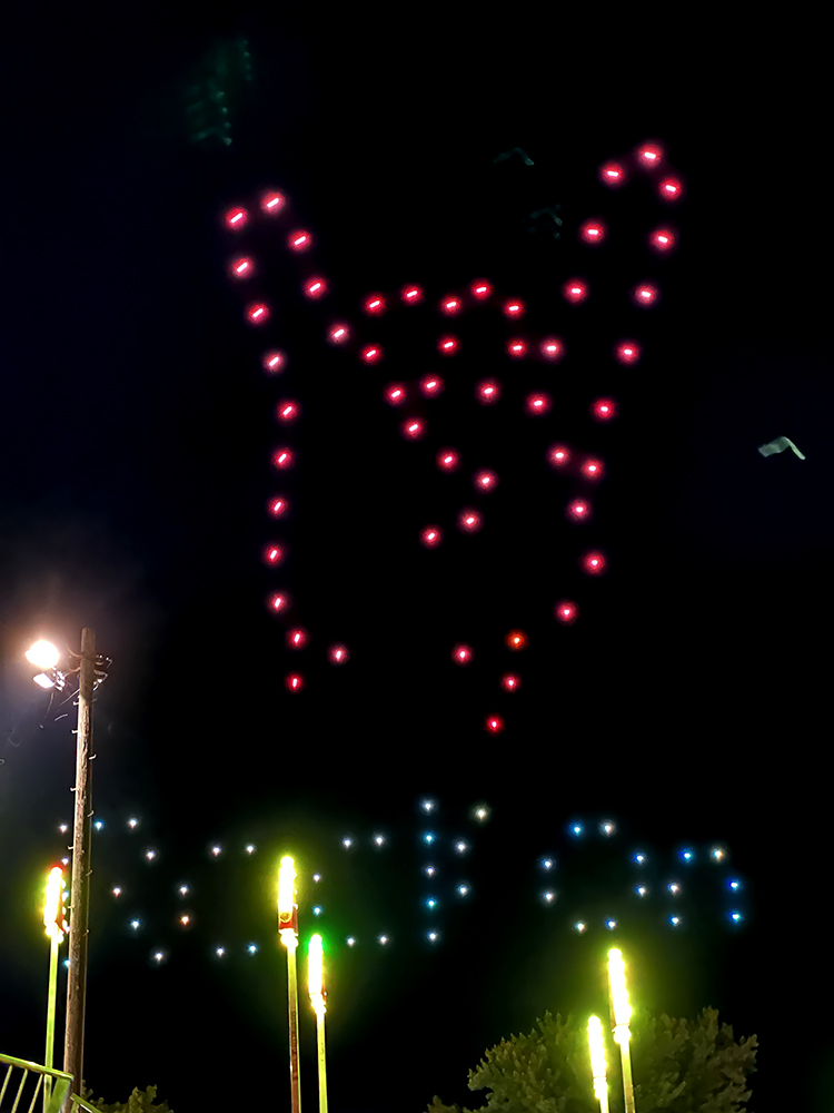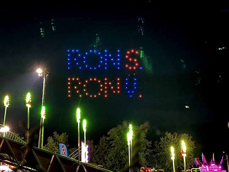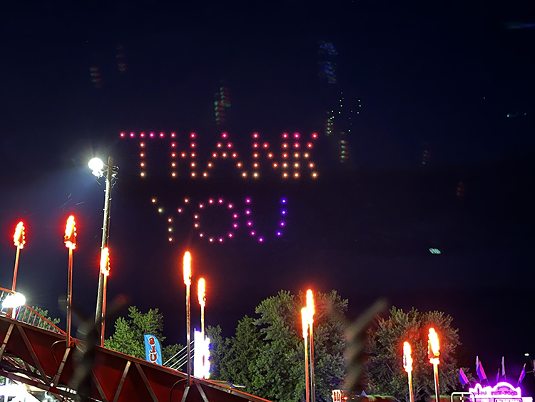 The Friday Night Drone Show, the first ever in Chatham-Kent, was in part a tribute to longtime Threshing Festival Volunteers Ron Swackhammer and Ron Vanrabaeys
